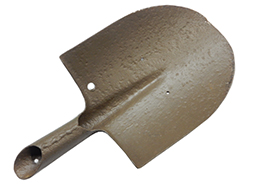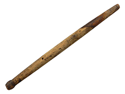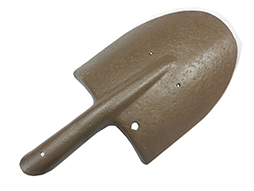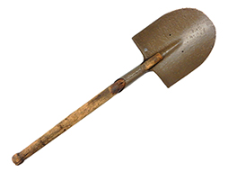 日本陸軍小円匙(えんぴ)です。 柄の部分とシャベルの部分を分離できます。リペイントされたシャベル部分には朽ち込みが見られ、木部には割れ欠け等があるものの全体に今なおしっかりとした品です。 柄とシャベルを接続した際の長さは約66cmです。(AW)