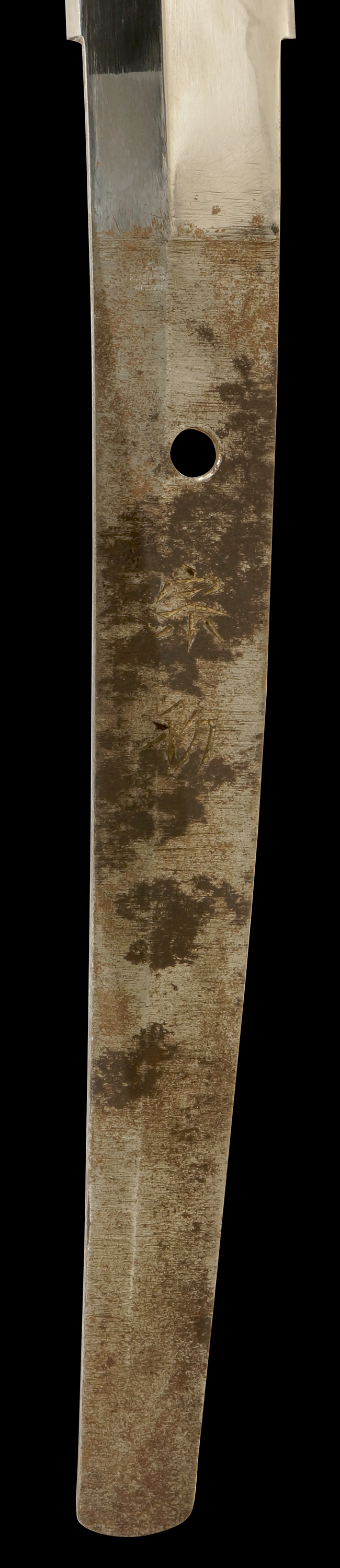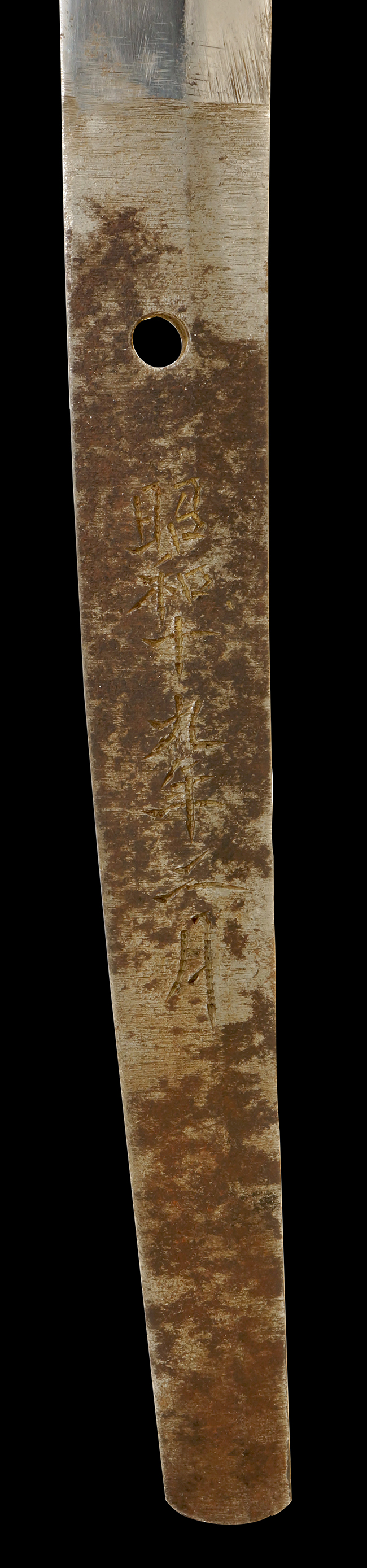 種別は「たち」 、長さ65.6cm、反り1.8cm、目くぎ穴1個、銘文は「(表)宗利、(裏)昭和十九年二月」と記載されています。