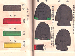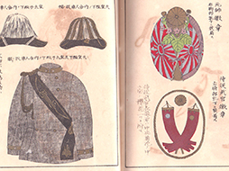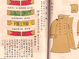 縦約11cm、横約15.5cm、厚さ1.5cm、折畳の表も (2枚)付属しています。 明治40年9月1日と裏表紙にあります。 シミ、ヤケなどの経年傷がありますが、落丁も見られず全76ページ全て揃っているように思われます。 明治期の陸海軍の軍服、階級章、勲章、徽章等が美麗なカラーで紹介されています。