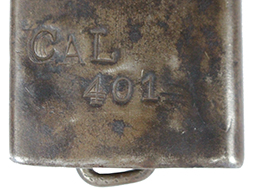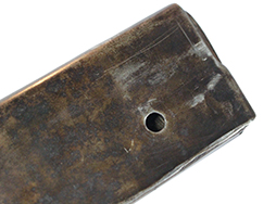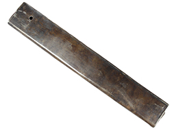 - アイテム説明ウィンチェスターM1910自動小銃用マガジンです。 右側面下部に「CAL 401」、底面に「401」の刻印が見られます。 角部や銃に挿入した際に付いたと見られる擦れや朽ち込み等々の経年感が見られるものの、全長約33.5cm、幅約5.3cmの全体にしっかりとした大変特徴的な品です。 フォロアーの動きも大変スムーズです。 (RF)