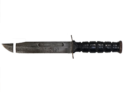 - アイテム説明Camillus社製のKA-BAR ファイティング・ナイフです。 剣身は15cm未満で切断された合法品で、切断された剣先が付属します。 グリップとシースは黒い革製で、80年代以降に生産された仕様となっています。