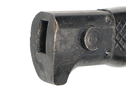 刀身は15cm未満で切断され、切断された剣先とシースと一体になった剣差が付属します。 多少の小傷は見られますが、全体的に使用感は少ない印象で良い状態を保っています。 ブルー仕上げが施されており、剣身の根本にサンタバーバラ造兵廠とシリアルの刻印が見られます。 (TM)