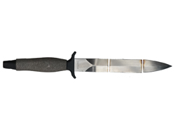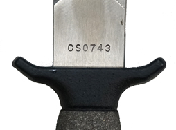 - アイテム説明ガーバー社製のマークII 戦闘ナイフです。 刀身は根元から約14cmの位置で切断された合法品で、切断済みの剣先が付属します。 刀身にMark IIのレーザー刻印、刀身根本にはGERBERのロゴ及びPORTLAND, ORE. U.S.A.のアドレス刻印、反対面にはシリアルNO.刻印が見られます。 スキャバードのベルト対応部のゴムにもロゴが見受けられます。 本品は直刃で刀身両面が鋸状となっており、ハンドルはCat’s Tongue(猫の舌)タイプと呼ばれるやすり状でざらつきのある加工が施されています。 各部の構成から1989~96年にかけてナイフ専門ショップのCutlery Shoppe限定モデルとして取り扱われていたモデルと思われます。 全体としてはごくわずかに小傷や汚れは見られるものの、ナイフ本体とスキャバードともにほぼ使用感のない、しっかりとした状態の品です。 また、スキャバードの留め具も問題なく機能し、ナイフの固定も問題なく行うことが可能です。 (TM)(TK)