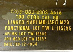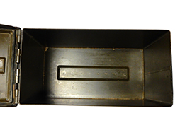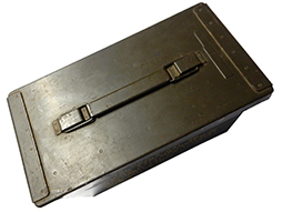 アメリカ軍 .50口径 弾薬箱です。 側面には「100 CTGS CAL .50」などと黄色くステンシルされています。 全体的に若干のスレキズや一部にサビが見られますが、大きな凹みは見られず良好な状態です。 蓋のロックも確実に行え、蓋のゴムパッキンも比較的状態がよく機能的問題もありません。 (AW)