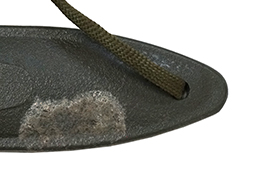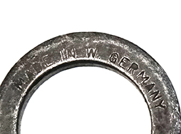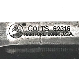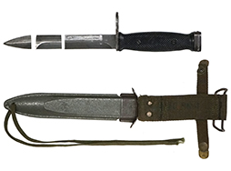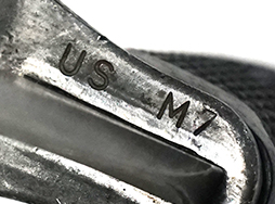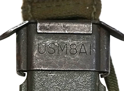 刃にはコルト社の刻印と、[COLT’S 62316] [HARTFORD, CONN. U.S.A]の刻印が見られ、ヒルト部には[MADE IN W. GERMANY US M7]と刻印が打たれています。 スキャバードには「USM8A1」の刻印が見られます。 口金にはやや表面錆が見られますが、こちらも大きな破損や変形は見られません。 スキャバード本体にも大きな割れや欠けは見られず、銃剣の収納も問題なく行うことが可能です。 コットン製の剣吊部にもやや汚れや金具の錆が見られますが、スナップ・ボタンの機能も健在です。 (MD)- 詳細画像