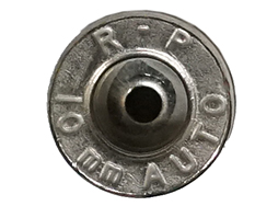 10mm AUTO ダミーカートで、弾頭先端が凹んだJHP弾頭が装着されています。 ヘッドスタンプはR・P 10mm AUTOとなっています。 弾頭部に経年に伴うくすみが若干見受けられますが、大きな破損等はありません。 雷管や装薬の一切入っていない安全品です。 (YS)