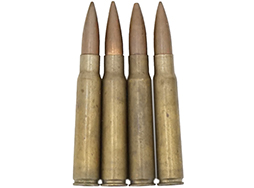イタリア 8mmモーゼル ダミーカートです。 ヘッドスタンプはローマのBPD(Bombrini-Parodi-Delfino)となっており、製造年1952~53年で、個体によって異なります。 薬莢は真鍮製で、スティールコアFMJ弾頭がシーティングされています。 薬莢や弾頭には経年に伴うくすみが見られますが、大きな凹みや変形は見られません。 雷管に打撃痕のある、内部に装薬などの一切入っていない安全品です。 (TK)