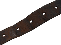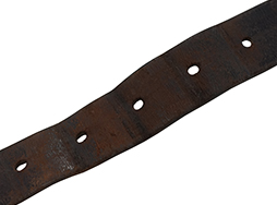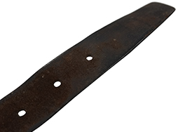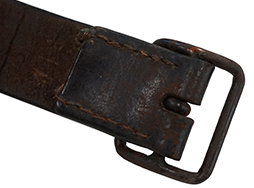 - アイテム説明旧日本陸海軍の下士官兵が使用した帯革(たいかく)です。 陸軍では殆どの兵隊が、海軍は陸戦隊員等が使用しました。 ベルト部分の長さ約1,070mm、幅約40mm、厚さ約4mm、穴10個、金具(びじょう・バックル)は鉄製で、その太さ5ミリです。 使用感、経年による革のやや痩せはありますが、革自体は柔らかさを保っており良い状態です。金具の縫い目も一部が銅線に縫い変えられていますがしっかりとしています。ベルト穴も通し跡はありますが、長期に使うことによってできる穴の楕円形の広がりはそれほどありません。 革全体に擦れ小傷が見られます。 遊革が欠損していますが、近年このようなオリジナルのべ-シックな装備品が入手し難くなっています。 (YS)