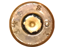 本品のヘッドスタンプは「S 01 14」となっており、1914年1月にBerlin-Spandau-Konigliche Pulverfabrik(ベルリン・シュパンダウ王立火薬工場)で生産されたことが分ります。 弾頭はオリジナルの円錐フラットノーズで、磁石に反応するフルメタル・ジャケットとなっています。 弾頭のニッケルメッキには僅かにくすみが見られますが、凹みや破損は見られません。 薬莢も経年により時代が付いていますが、こちらも凹みや破損はなくしっかりとした状態が保たれています。 雷管外縁の黒塗装も僅かに残っています。 雷管は打撃痕のある発火済みで、内部に火薬等一切入っていない安全品です。 (TK)- 詳細画像