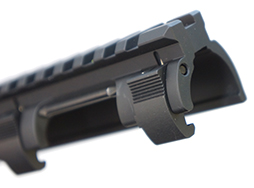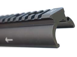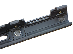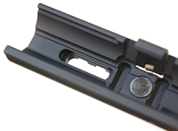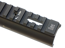 本品はドイツのHK社純製品で、本体上部にはHK社のロゴがレーザー刻印により入っています。 .22LRモデルを除く全てのMP5シリーズに適合します。 着脱の容易なクイック・リリース仕様で、本体上部には銃本体のシリアルNo.を確認できるよう小窓が設けられています。