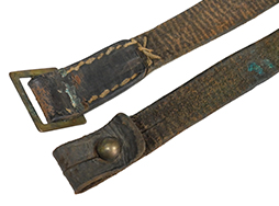 ベルギー FN モーゼル M1930/36 短小銃や戦後のFN M1949自動小銃に使用される革製スリングです。 革部分は経年に伴う痩せが見られ、細かなひび割れが見られますが、破断には至っていません。 真鍮製のギボシやコキカンといった金具部にも時代がついており、良い雰囲気となっています。 全体的に経年感がありますが、比較的しなやかさは保たれています。 (TK)