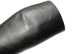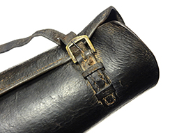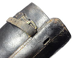 大きな破損は見られず良好な状態を保っていますが革は硬化気味で留革が一部欠損しています。 全長約25cm。 (AW)