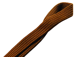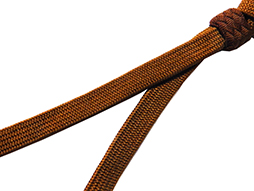 昭和12年に制定された太刀型軍刀と合わせて制式化された、平織づくりのの刀緒です。形や見た目は陸軍の昭和9年制式の刀緒とほぼ変わりがありませんが、階級別の色の差異はなく表裏共に茶色一色となっています。