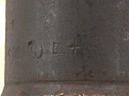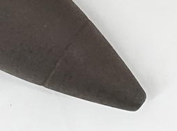 本品は全体的に表面錆や朽ち込みが見られますが、現状状態は落ち着いています。 弾体側面には「昭十四 10」と大阪砲兵工廠を示す交差した大砲の刻印、「AB5」「タ」の検印が見られます。 銅製の弾帯(スリッピング・バンド)にはライフリングの噛んだ跡はなく、一度も発射されたことのない品となっています。 弾底信管は除去されており、内部にも炸薬等一切入っていない安全品です。 弾底信管取り付け用のネジ山は健在です。 全長:約18,3cm、重量:約1.524g。 (TK)- 詳細画像