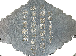 本体裏面には「昭和7年11月 久邇宮朝融王殿下 海軍大学校甲種学生 御卒業記念」と彫られています。