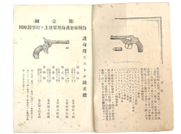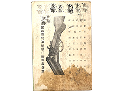 - アイテム説明明治二十年頃から平成元年まで主に猟銃の輸入・製造販売を行っていた川口屋林銃砲火薬店(後のK.F.C)の商品カタログです。 表紙には「明治三十七年九月改正 拳銃空氣銃定價表(非賣品) 東京市日本橋區本銀座貳丁目 川口屋林銃砲火藥店 電話本局九百二十番」の文字が見られます。 本書は内容50ページで構成され、40ページ目まではほぼ毎ページごとに回転拳銃、散弾銃、杖仕込み銃、空気銃や各種弾薬の略図が掲載されています。 ベルグマンM1896自動拳銃、回転拳銃はS&W、マーウィン・ハーバート、マーリン・ファイアー・アームズ、アメリカン・アームズ、ホプキンス&アレン、マートビー・ヘンリー製など掲載されていますが、それぞれ銃の特徴と概要、価格のみで銃名は記載されていません。 戦前のカタログのため、護身用拳銃や拳銃弾薬が(1~31ページ目まで)掲載されています。 32~44ページまでは杖型仕込み銃や手入れ用具と空気銃、買取や発送についての記載、45~46ページは各種村田式猟銃の価格や口径、簡単な解説が文字のみで記載されています。 47~50ページは各種レミントン、グリーナー製猟銃の価格表となっています。 本書は120年ほど前(1904年)に発行された書籍ということもあり、日焼けや染み、角部に若干のアタリが見られるものの、落丁等はなく現在も十分に可読性、資料性が十分に保たれています。 裏表紙には手紙に押印する判子の練習に使用したと思われる「親展」の押印(10箇所)や、裏表紙に印刷された内容を子供が真似て書いたと思われる鉛筆文字の書き込みが見られるなど、当時の息遣いが感じられる品です。 (TK)