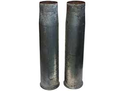- アイテム説明M48/60パットンやM1エイブラムス(初期型)、M1128 ストライカーMGSに使用されるM68 105mm戦車砲の薬莢です。 本品はM393A1 TP-T訓練弾に使用されるM148A1B1 鉄製薬莢となっています。 訓練用のため実弾用の薬莢(105X617R)よりも薬莢長が短く(605mm)なっています。 防錆用の亜鉛メッキと思われるコーティングが施された金属製薬莢で、どの個体も表面錆や擦れが見られますが、総じて大きな凹みや変形は見られません。 薬莢底部には「105mm M148A1B1 NOR 84 CO19-050」の刻印が見られます。 薬莢内部には錆が見られますが、現状穴等は開いていません。 雷管に打撃痕のある、内部の火管が燃焼済みの安全品です。 薬莢全長:約60.5cm、最大直径:約14.7cm、重量:約5.6kg。 (TK)