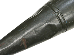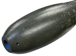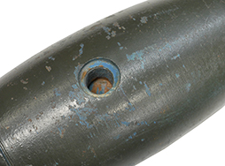 - アイテム説明米軍 Mk76 mod5 訓練用爆弾です。 重量25ポンド(約11kg)の訓練弾で、米空軍及び海軍、航空自衛隊でも同モデルが航空機による爆弾投下訓練に使用されています。 本品は信管や内部に火薬等一切入っていない合法安全品です。 側面のハード・ポイント接続用ラグは除去されています。 本体は訓練弾を示す青塗装の上からOD色でリペイントされており、OD色塗装の剥落した箇所に青塗装が覗いています。 若干の傷や錆の発生、側面に着弾時の衝撃によるものと思われる凹みが見られますが、安定フィン部分に大きな歪みや破損は見られません。 (TK)