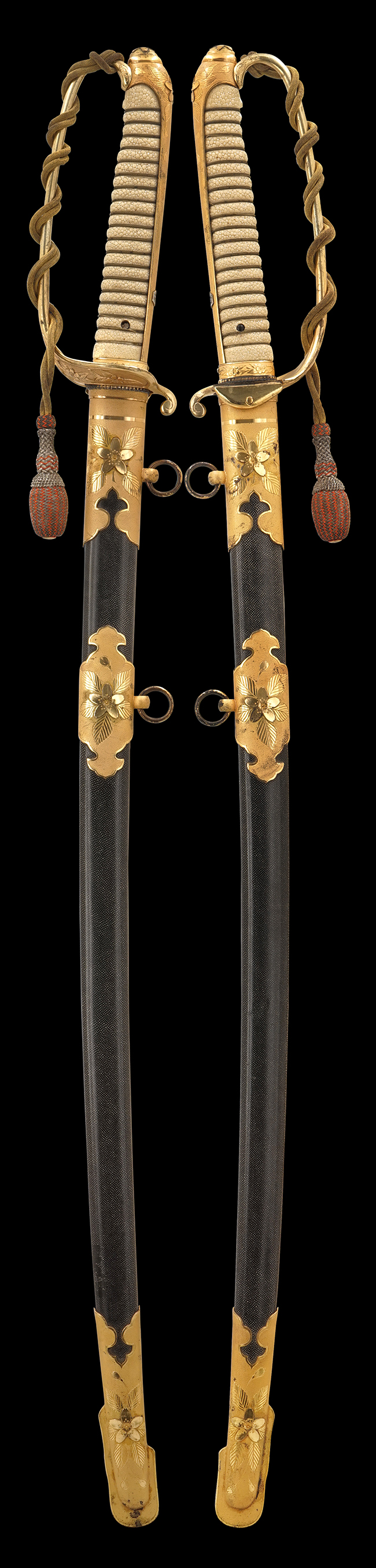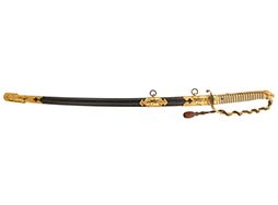 付属の佐官正刀緒には経年に伴う黒ずみとごく僅かな解れが見られますが、大きな解れや切れといった破損はありません。 本品のように元の所持者の分かる軍刀は貴重で、著名な軍艦に乗艦していた佐官将校となると更に希少価値のある品です。