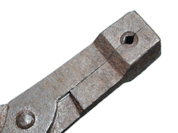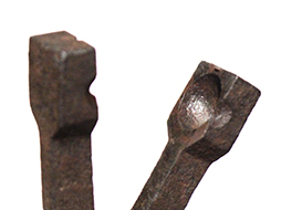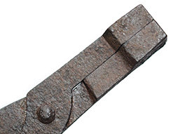 本品は長さ約17.8cmの鉄製の弾鋳型です。 本品で直径約12.5mmの円形弾丸を作ることができる火縄銃の細筒用です。 本品は日本製で江戸時代に作られた品です。