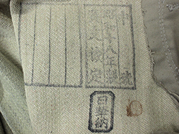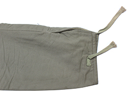 日本陸軍下士官兵用綿製冬軍袴です。 内側には擦れて若干見難くなっていますが、「中号、昭和十八年、廣支検定」などの検印があり、記名欄は無記入です。 サイズは大き目の中号となっています。 経年による僅かな解れや擦れ、右膝部分などにはシミなどが見られますが未使用の極めて良い状態の美品です。 木製のボタン、腰紐、足紐も完全です。
