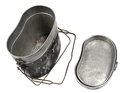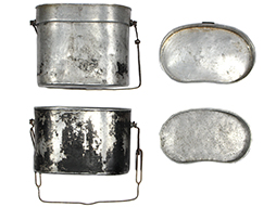 日本陸軍の九二式二重飯盒です、昭和7年に制定された新型飯盒で蓋・中蓋・外盒・内盒からなり、外盒に内盒を入れ収納しました。