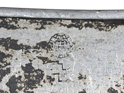 アルミ製の飯盒には日本アルミ九七等のメーカー刻印が確認できます。 各部には炊爨痕や擦れなどの経年感や〇に医や馬渕、北村、クマクラ等の名前をケガキした文字も各部に見られますが状態に問題は無く、蓋なども全て揃った品です。 高さ約16cm、幅約18cm、厚み約10cm。