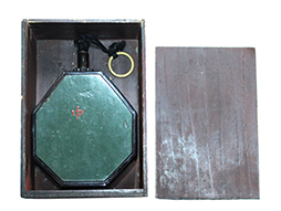 - アイテム説明【大筒用木製黒青漆塗八角形火薬入(時代箱付)について】