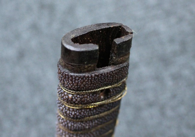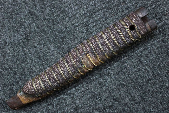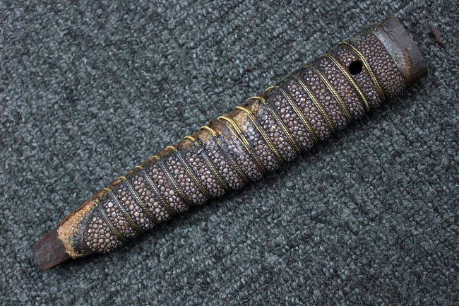 柄:黒鮫皮 金線太1本、細2本巻となっていますが先端部分の金線細の一部に切れが見られます。