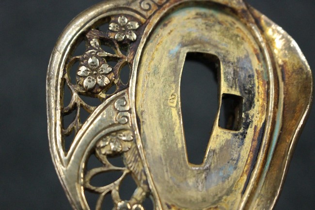 護拳: 透かし鍔に桜花葉枝蕾、メーカー刻印や2の刻印も確認できます。