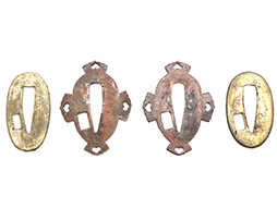 小刻2枚 (真鍮製白金系鍍金 仕上げ、柄側の1枚に三五七刻印)