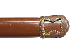 留め具は駐爪留めです。 本品の鞘口金(鯉口)の駐爪留めを解除する釦が省略された仕様です。