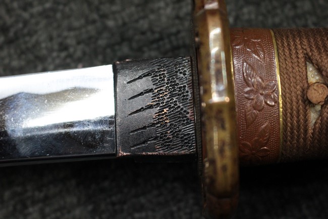 はばき:銅製 黒塗装が施され、細かい刻み模様が確認できます。