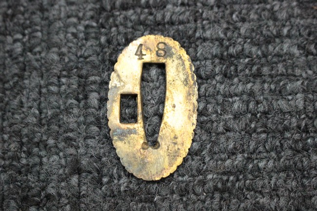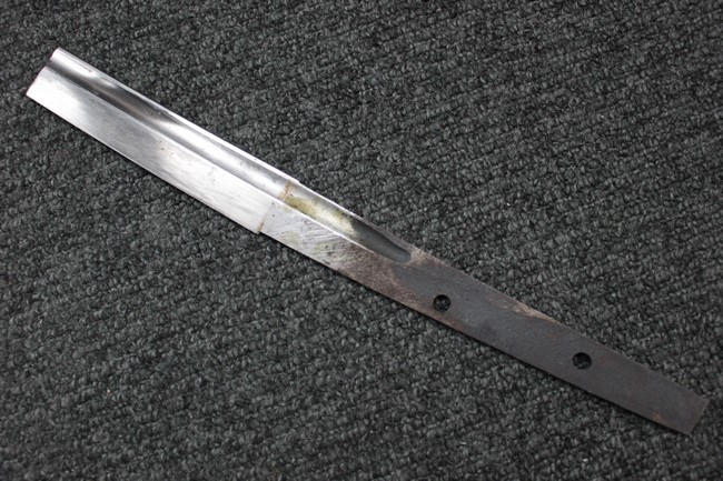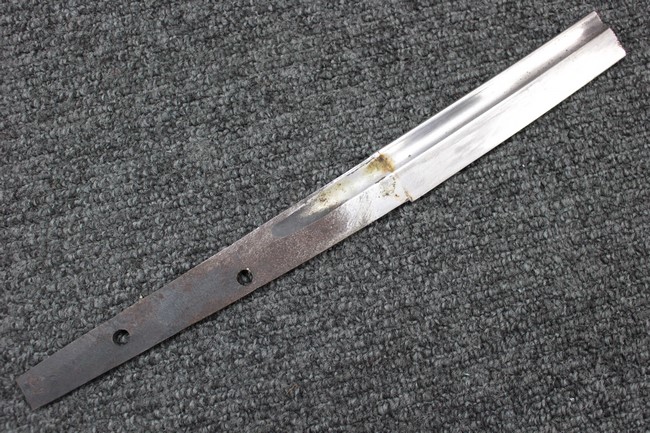 陸軍旧型軍刀の拵に48と打刻された刀身を15cm未満に切断した合法品の本身が入った品です。