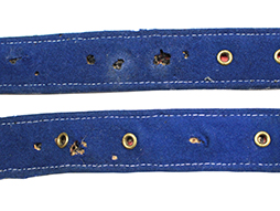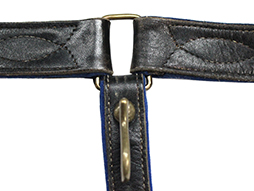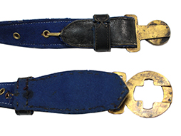 正刀帯は正装時や礼装時に正衣と併せて着用しました。 本品は裏地が青色の尉官用で正刀を吊るす下緒が付属しています。