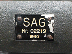 ドイツ陸軍のオリジナルのジャーマングレイ塗装で、極一部の塗装剥離はありますが全体の95%以上の塗装は完全に残っています。 収納位置を示す赤線も健全です。 左側に1940年Saalfelder Apparatebau GmbH(SAG)社製を表す「SAG、Nr.02219」の製造年/メーカー銘板、右側に「Em 1m R36,m.f.M. Vergr. 6x、」の器材銘板が付いています。 更に距離調整「Entfernungs-Berichtigung」、高さ調整「Hohen-Berichtibung」、光学系調整「Berichtigen nach Latte、Messen」などの各調整部分に部品名称/使用目的が記されたプレートが付いています。 当然すべての表記はドイツ語になっています。