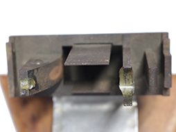 .50口径機関銃から排出されるベルト・リンクを集めて一定方向に流す役目をする部品です。 装着部分は鉄製、シュート部分は軽金属製。「20 615530」や「7265185」の刻印が見られます。 (AW)