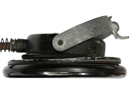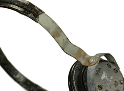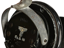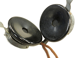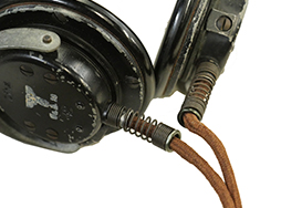 - アイテム説明第二次世界大戦時にドイツ軍が使用した、 Dfh.a (Doppelfernhorer fur Heer und Allgemein) と呼ばれる戦車兵用のヘッドホンです。 本品には適度な時代が付いており、ヘッド・バンドの革製カバーには数箇所裂けが見られますが、大部分で革生地が残存しています。 ホッドホン・ハウジング両側面にはモデル名の「Dfh.a」、製造年と思われる「42」の打刻が見られ、WaA.38のヴァッフェン・アムトの白色スタンプがしっかりと残っています。 ベークライト製イヤー・パッドを外側から留めているリング状のパーツに変形が見られ、僅かに隙間が空いてしまっている他、ネジが1本欠損しています。 ベークライト製イヤーパッドの取り付けにガタつきは見られません。 コードについては一部に被膜の解れが見られる他、ほつれた箇所を糸で巻き付けて補修した箇所が見られますが、全体として欠損はなく概ねしっかりとした状態が保たれています。 尚、古い機械物ですので作動については保証いたしかねます。 (TK)