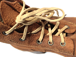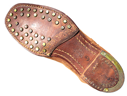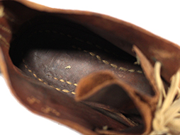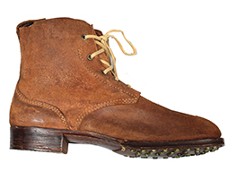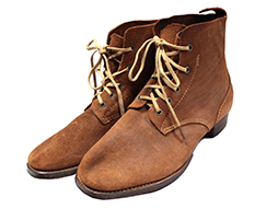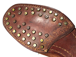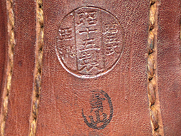 日本陸軍下士官兵用編上靴です。 靴裏には「昭五式」「亜靴」の刻印や検品した人物の印が鮮明に確認できます。 所々に経年感は見られるものの、全体に未使用と思われるほど程度の良い美品で靴裏にはびっしりと鉄鋲が打たれています。 昭和15年製と戦前の品の為、戦中の品と比べると材質も良く、仕上げも丁寧に感じられます。 靴の横には11文と打刻されており、断定はできませんが26cm位の方なら履くことが出来そうです。(AW)