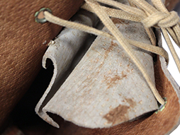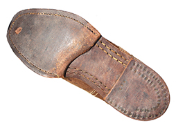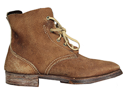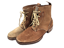 日本陸軍下士官兵用編上靴です。 靴裏には「ロ号」「昭十九製」「亜靴」の刻印が確認できます。 所々にタンの表革の剥げ等の経年感は見られるものの、全体にほぼ未使用と思われるほど程度の良い品です。 昭和19年製ながら大戦後期の品と思えないようなしっかりとした品です。 靴の横には11.0文と打刻されており、断定はできませんが26cm位の方なら履くことが出来そうです。(AW)