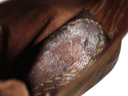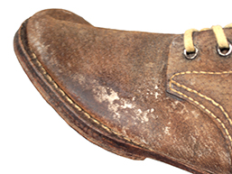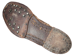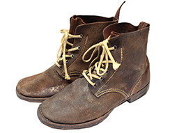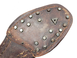 日本陸軍下士官兵用編上靴です。 靴裏などには刻印などは確認できません。 所々に経年感使用感が見られ一部にはカビた痕跡や補修した箇所も見られますが、大きな破損などは見受け等は見受けられず全体にしっかりとした状態の品です。 靴裏には鉄鋲が打たれています。 靴の横には10.7文と打刻されており、断定はできませんが25cm前後位の方なら履くことが出来そうです。(AW)