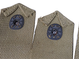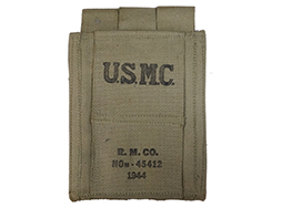 - アイテム説明トンプソン短機関銃用 30連マガジン用のマガジン・パウチです。 パウチには30連マガジンを3本収納でき、カーキ・キャンバス製となっています。 裏面には「U.S.M.C.」のスタンプが見られ、海兵隊で使用されたことが分かります。 また、「R.M. CO. No-45412 1944」のスタンプも押されており、1944年製となっています。 キャンバス地特有の解れ等が僅かに見られるものの全体的なコンディションは良く、破れや大きな汚れも見られません。 金具部の錆も殆ど見られず、しっかりと蓋をすることができます。 個体によって若干状態が異なります。 (YS)