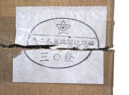布引の収納箱は、多少の解れこそ見れられますが目立った破損も無く十分に良い状態を保っています。 封をする紙も綺麗に残っており、側面に通常弾と生産年を示す張り紙が残っています。