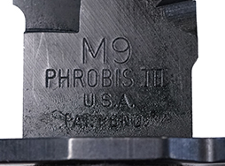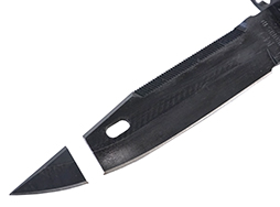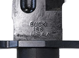 本品は使用感の殆ど無い非常に良い状態の品です。 剣身の根元には「BUCK 188 U.S.A.」、「M9 PHROBIS III U.S.A. PAT.PEND.」の刻印が打たれています。 剣身は根元から約14cmで切断されており、剣先が付属します。 ナイロンはごく小さな解れこそ見られますが、変色やダメージは最小限です。 (YS)- 詳細画像