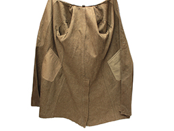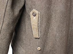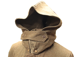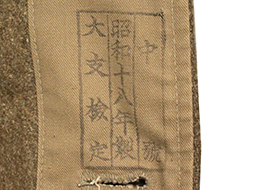 三式の一等兵襟章の付いた日本陸軍三式下士官兵用外套です。 内側には一部見難くなっていますが「三式、中号、昭和十八年、大支検定」などの検印があります、記名欄に記載はありません。 頭巾部分に経年による剥げが見られ、所々に解れや擦れがございますが全体に使用感の感じられない大変状態の良い品です。 頭巾、頭巾留布、剣吊もしっかり付属しています。