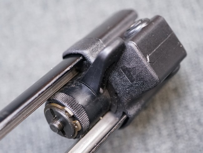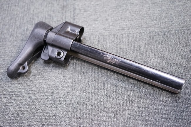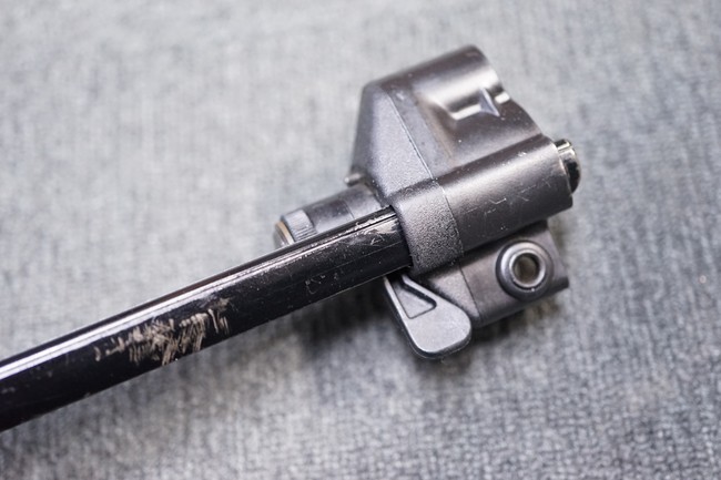 ストックのバーに目立つひっかき傷が見られますが、それ以外目立った破損もなく概ね良い状態を保っています。 ストックの伸縮はスムーズでキャッチの掛かりもシャープです。 (YS)