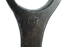 側面に1か所「13」の刻印が見受けられます。若干の表面錆が見受けられますが、朽ち込み錆などの劣化は見受けられません。 内径は18.2mmとなっています。
