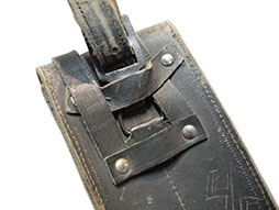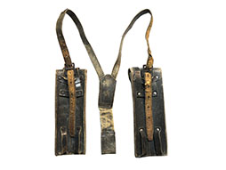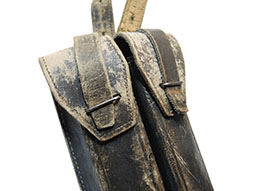 珍しいM38/44等共用、革製、マガジン2本用パウチとストラップ付です。 経年よる革の傷み等がみられます。