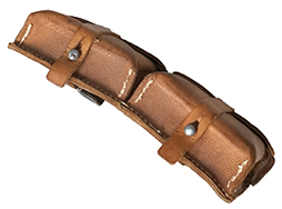 - アイテム説明Gew.43およびKar.43に使用されるマガジン・パウチです。 本品は茶色の革製で、背面のベルト・ループは黒色革製となっています。 また、背面にはサスペンダーと接続するためのDリングが装着されており、Dリングの留革は茶色のなめらかな革製となっています。 本品のパウチ内側には、レターコードは上半分が縫い目に隠れて判読しづらくなっているものの、「ros 1944」の刻印が見られ、1944年に製造されたものと思われます。 革生地には若干の乾燥や擦れが見られますが、縫い目の解れや強度に影響を及ぼす破損等は見られません。 背面右側のベルト・ループの上部に切れが見られます。 パウチには大きな型崩れもなく、マガジンの収納には問題ないものと思われます。 (TK)(TM)
