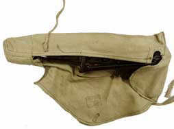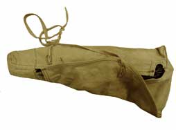 AKS-74u用の落下傘降下時や車内に格納する際に用いられる、キャンバス製の収納袋です。 マガジンを外した状態のAKS-74uがすっぽり収まります。 マガジンは内部ポケットに30連マガジンを1本収納可能です。 尚、40連マガジンは収納できません。 本品はロシア製で、やや判読が難しいですがスタンプが押されています。